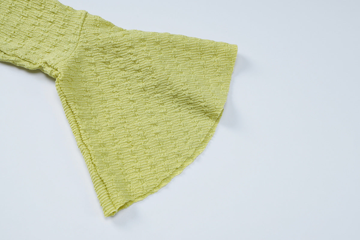 Off-shoulder neckline with ruffle detailing adds a touch of romance, while layered ruffles throughout create a dynamic, playful texture.